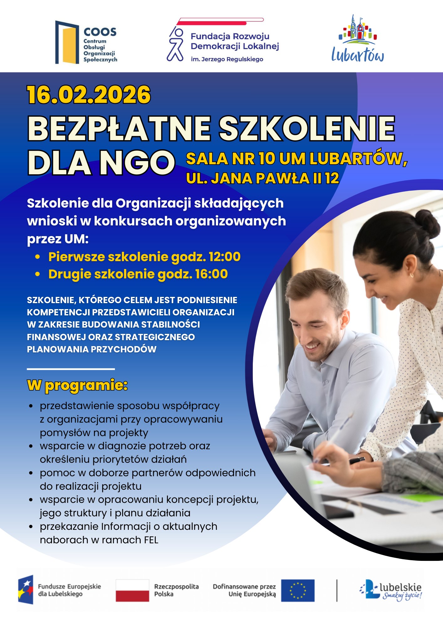 Centrum Obsługi Organizacji Społecznych zaprasza na bezpłatne spotkanie konsultacyjne organizowane w Lubartowie: