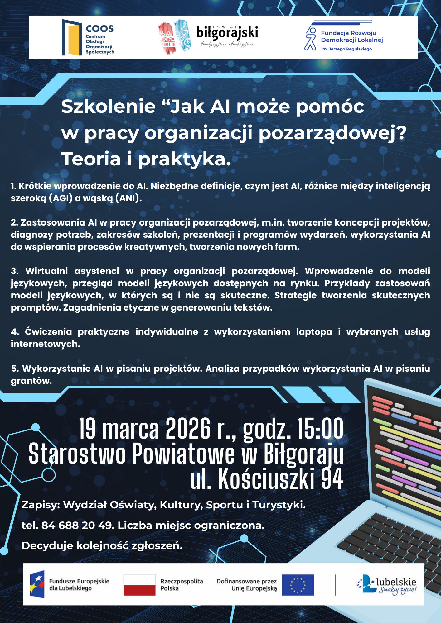 19 marca 2026 r. szkolenie stacjonarne w Biłgoraju