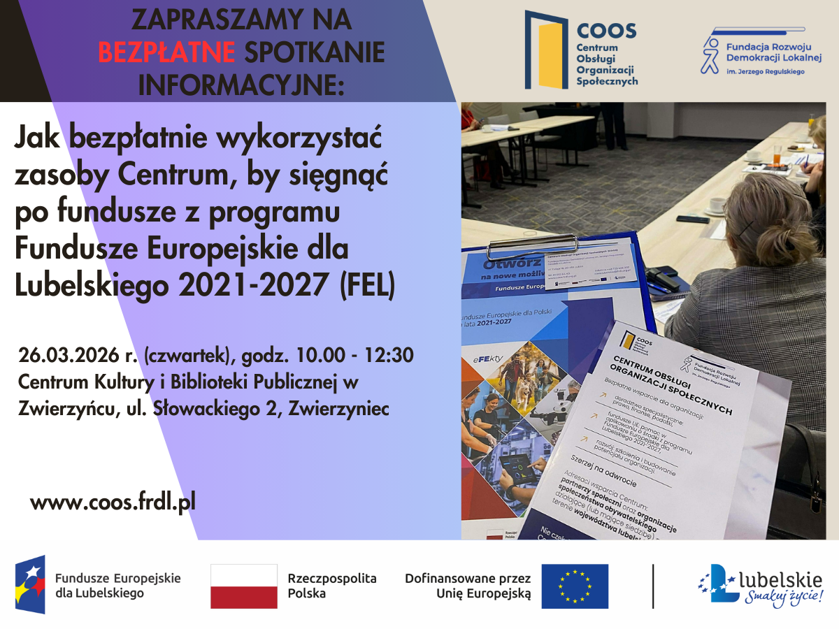 Centrum Obsługi Organizacji Społecznych zaprasza na bezpłatne spotkanie informacyjne: